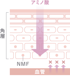 皮膚の表皮、角層は血管が通っていないため、肌内部のアミノ酸は補給されません。