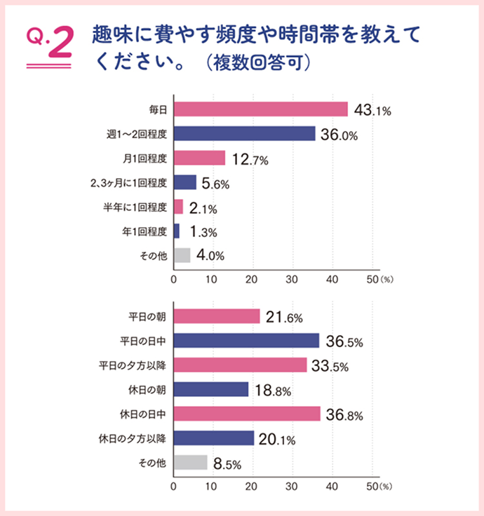 趣味はいつ、どのくらいの時間をかけているのかなど、みなさんの趣味ぐらしの実情をご覧ください。