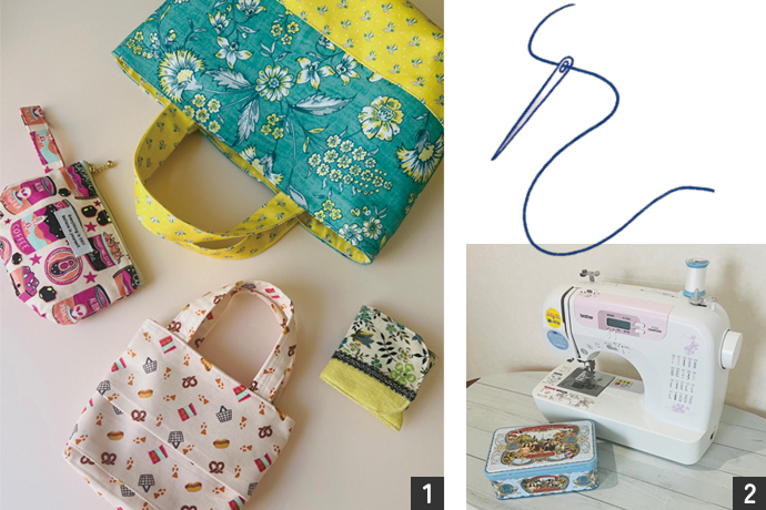 1)布小物作りはバッグやポーチが中心。形にはあまりこだわらず、シンプルなデザインが多め。