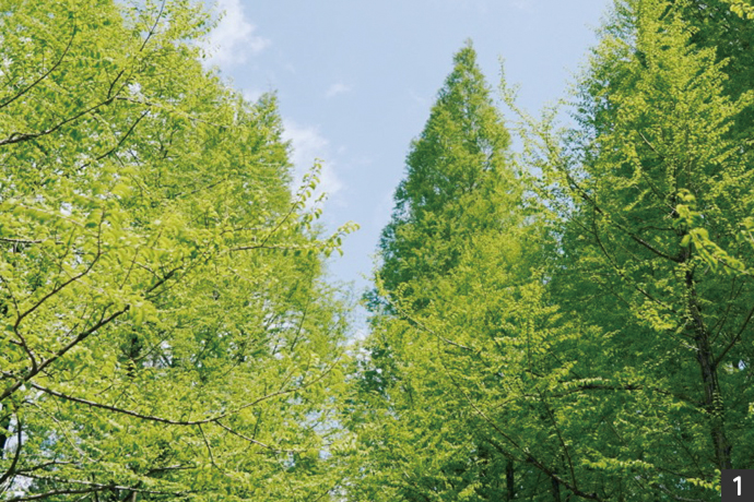 1)六甲山にある森林植物園は、四季を通して素敵な植物と景色を見せてくれる大切な場所。新緑の季節のメタセコイア並木は輝くばかりの美しさ。